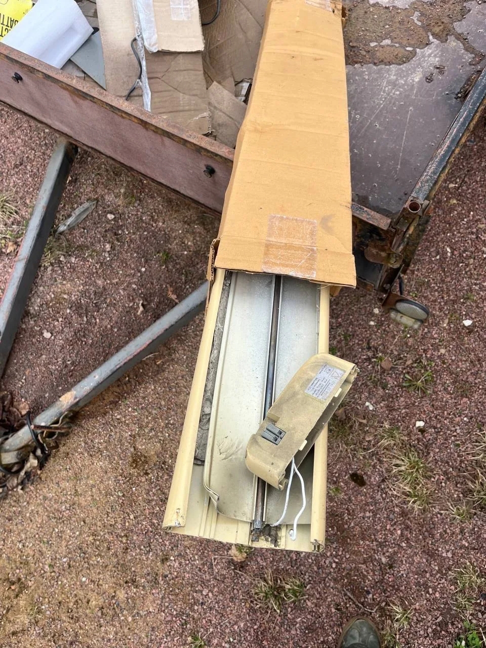 Вот такой габаритный металлический "предмет", хоть и в бумажной коробке, стал виновником разрыва мешка своими острыми металлическими гранями, встав поперек при разгрузке мешка в мусоросборную машину: